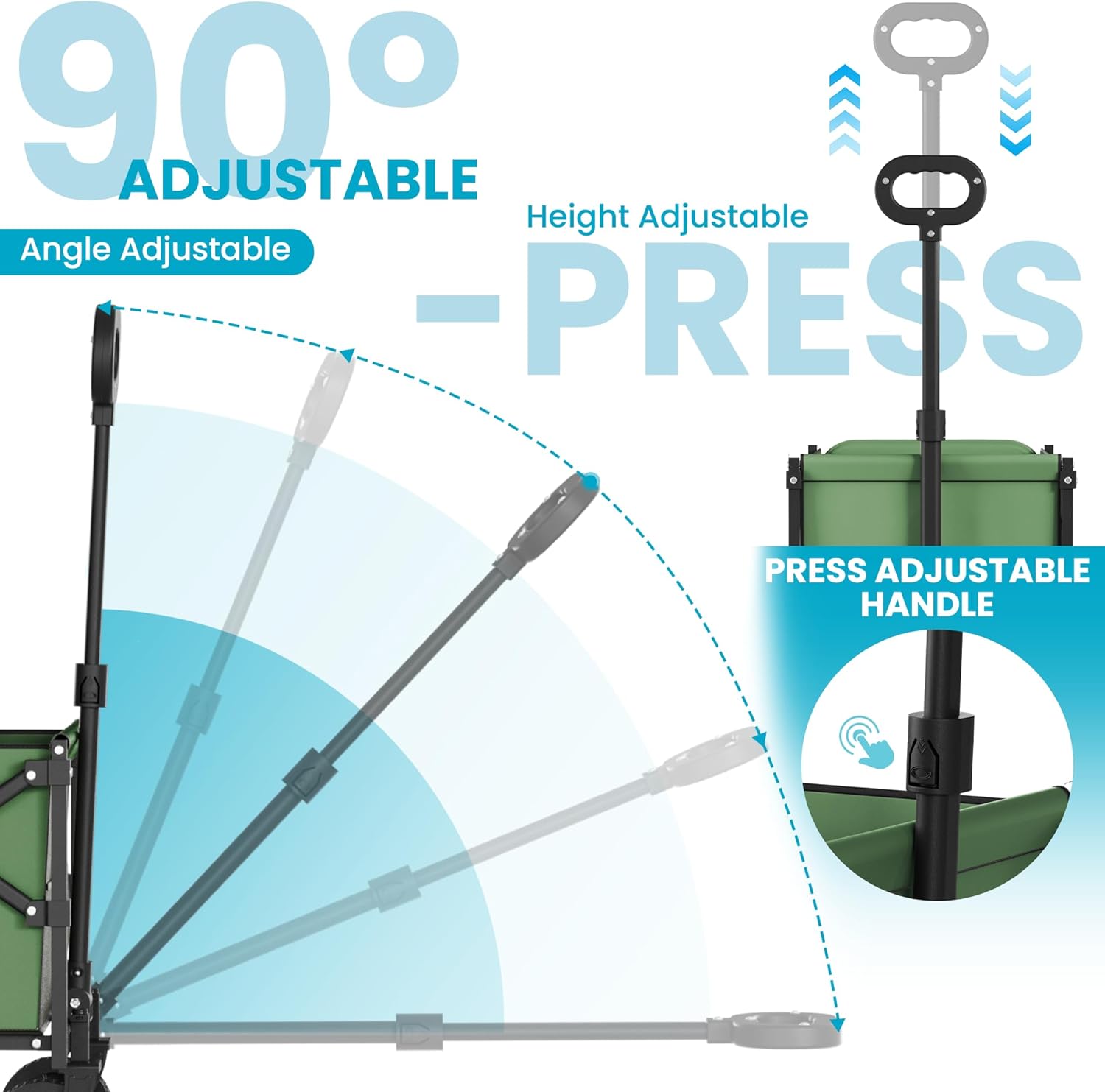 Collapsible Folding Wagon with Tailgate, Wagons Carts Foldable with 350lbs Capacity, Lightweight Portable Utility Wagon Cart for Shopping Camping Sports Garden (Green)