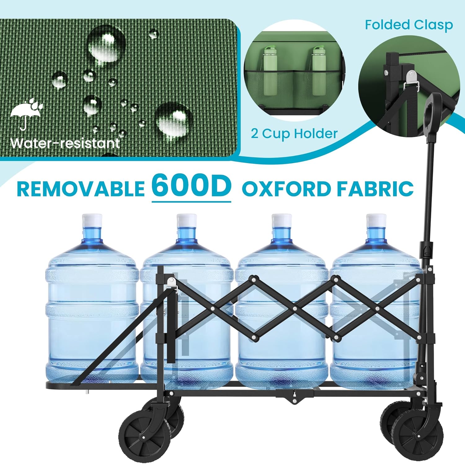 - 【350LBS Load Capacity】Featuring a double-crossing, robust frame, it boasts an impressive load capacity of up to 350lbs. The 600D Oxford fabric is both wear-resistant and waterproof, plus it’s easy to disassemble and clean. Whether you’re traveling or transporting parcels, this wagon is a reliable companion that’s built to go the distance.